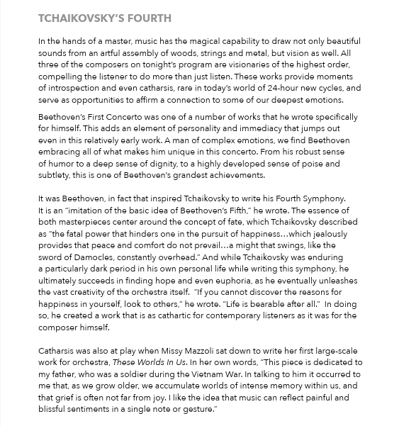On March 13 and 14, conductor Marcelo Lehninger and the Rhode Island Philharmonic Orchestra will present TCHAIKOVSKY'S FOURTH with pianist Sara Davis Buechner.